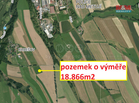 Nabízíme Vám ke koupi soubor 3 (tří) sousedících pozemků o celkové výměře 18.866 m2 v obci Police nad Metují - Radešov nad Metují. Jedná se o trvalý travní porost, který je obhospodařován a v současné době je zde uzavřena pachtovní smlouva. Pozemky jsou přístupné z obecní komunikace a lze je prodat i jednotlivě. Jedná se o zajímavou investiční příležitost. Pro více informací kontaktujte makléřku Ing. Zdeňku Kubíček Martinkovou.